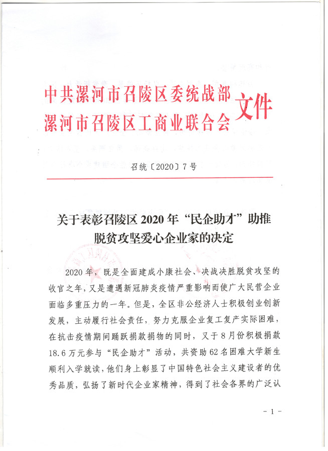 “民企助才”是2020年有中國漯河市召陵區(qū)委統(tǒng)戰(zhàn)部和漯河市召陵區(qū)工商業(yè)聯(lián)合會所倡導(dǎo)的一次募捐活動,旨在幫助家庭貧困、入學(xué)困難的大學(xué)新生能夠順利入學(xué)。